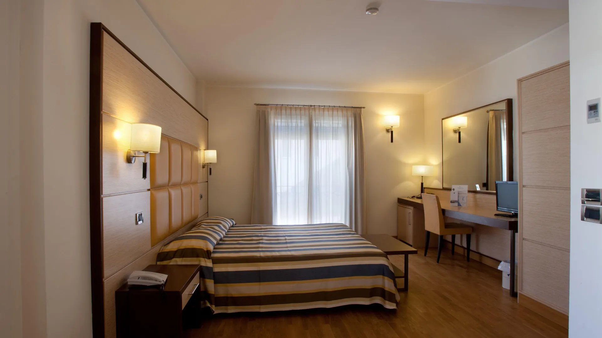 Le 72 camere insonorizzate del Virgilio Grand sono dotate di ogni comfort moderno: bagno privato con vasca idromassaggio e asciugacapelli, connessione internet wireless, minibar, aria condizionata e riscaldamento, telefono, fax, radio, TV satellitare e balcone. Alcune dispongono inoltre di minibar gratuito con bevande analcoliche, vista sulla piscina o posizione privilegiata al di sotto del piano terra.